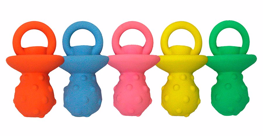 En realidad no están ideados para ser mordidos una y otra vez por las fuertes mandíbulas de los perros, por lo que existen muchas posibilidades de que el chupete termine fragmentándose en la boca del perro y este pueda tragar algún trozo del mismo.