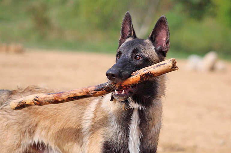 perro moerdiendo un palo